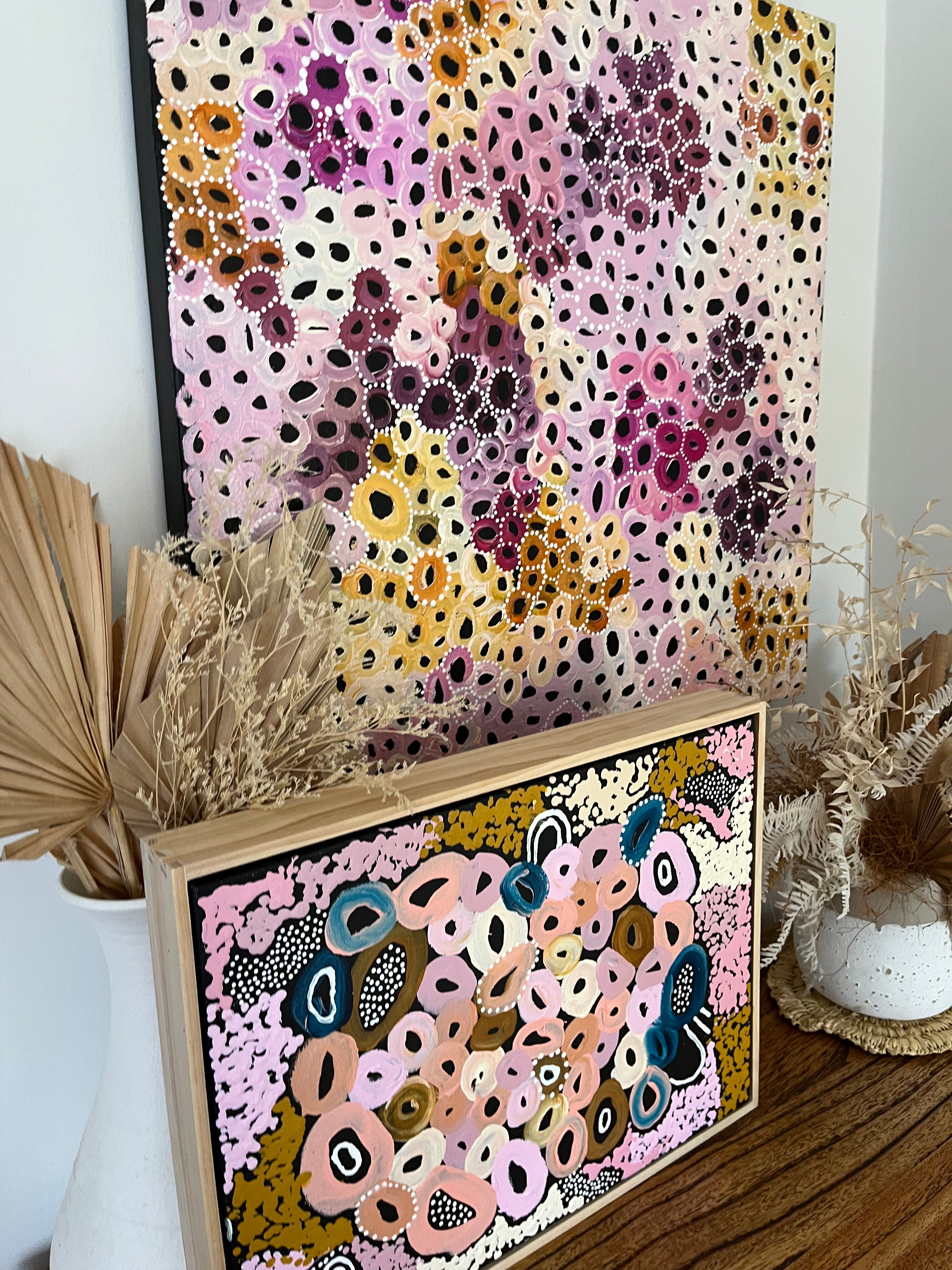 Bri’s art has her own very unique style to Contemporary Aboriginal Art. You discover that each new collection is inspired by the season of life around her.